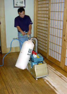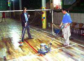 一.施工程序 1. 使用大型地板翻新機械數(shù)次打磨除去漆層、表層、木質(zhì)層約0.5毫米,再經(jīng)仔細砂光使地板表面細膩、光滑達到全新狀態(tài)。地板邊角使用小型角磨機進行打磨達到整體平滑效果。 2. 將原有的邊縫透明膩子剔除,重新封縫。 3. 待底漆干后,刷第一遍面漆,待干。 4. 用水砂紙仔細研磨,將面層磨至略感粗糙,除去粉屑,刷第二層面漆。 5. 待后一遍面漆全干后打上地板蠟即可。